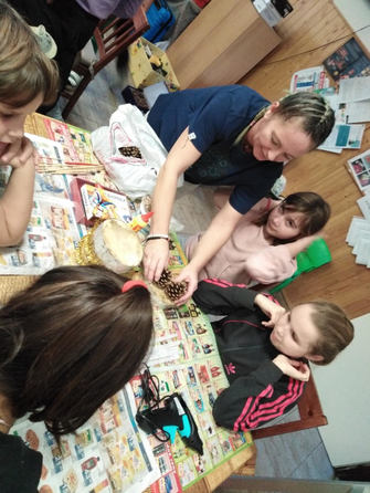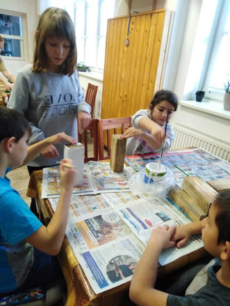 Úkolem bylo, aby si každá RS připravila nějaký nápad či předlohu, podle které se bude vyrábět. Klaplo to na výbornou. Všechny děti měly co dělat a jejich přístup byl obdivuhodný. Vyrábělo se z různých materiálů od papíru, vaty, dřeva, různých barev, lepidel po na podzim nasbírané přírodniny. Pod vedením vychovatelů vznikala různá díla a nakonec si mohly děti vytvořit také něco dle své vlastní fantazie.