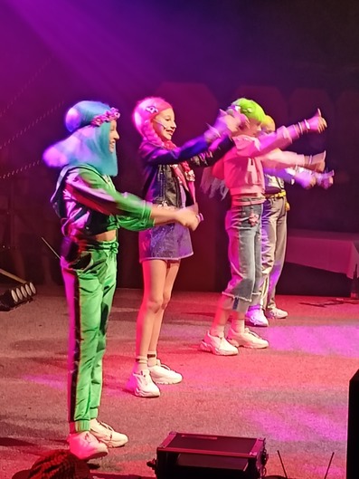 Sobotní dopoledne bylo pro nás velmi zábavné. Byli jsme pozváni na hudební představení do kulturního zařízení Moskva. Vystupovala zde dívčí pěvecká a taneční skupina LOLLIPOPZ. Lollipopz je česká dětská pěvecko-taneční hudební skupina zaměřená na dětské publikum. Skupinu tvoří 4 dívky ve věku 11-13 let. Vyznačují se především svými různobarevnými parukami, hrají vlastní repertoár. Na YouTube nahrává pořady Lollymánie a Lollyboxing. Veselé diskotékové písničky zvedly ze židlí spoustu návštěvníků včetně našich 20-ti pozvaných dětí z DD. Zpívaly a tančily společně s ostatními, čas rychle uběhl... V 16:30 hodin se dívčí skupina s návštěvníky rozloučila a pomalu jsme se společně přesunuli procházkou na DD. Pro všechny bylo vystoupení velmi příjemným zpestřením stávajících podzimních dní :)