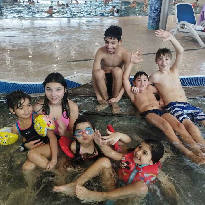 Děti nadšeně dováděly ve vodě a zlepšovaly své plavecké dovednosti. ![]()