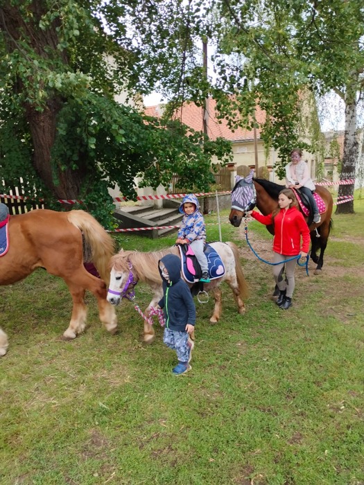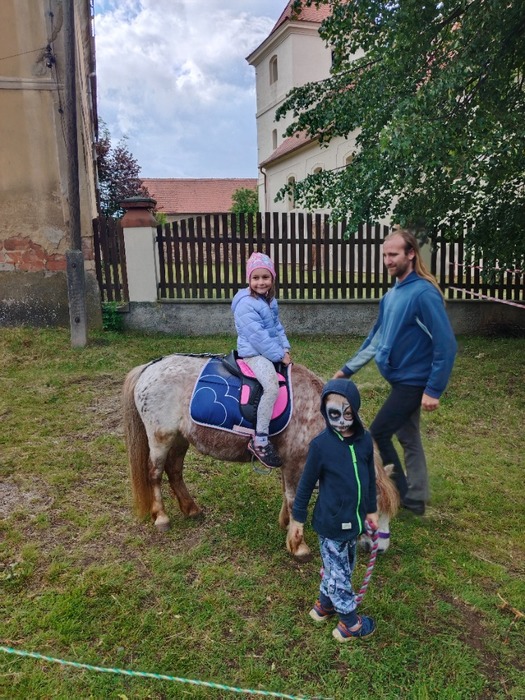 Program pouťového odpoledne byl pestrý. Všechny děti měly možnost využít tento den tak, jak si samy přály. Svezly se několikrát na kolotočích, zaskákaly si na gumovém hradu, užily si také vyrábění staročeského perníku v historických formičkách, který byl mimochodem i velmi chutný. Děti se dokonce svezly i na koních. S nadšením jsme všichni sledovali výcvik pejsků, které jsme si poté mohli pohladit. Naši nejmenší se zájmem sledovali vystoupení Sacra Cirkusu a úžasně se bavili.