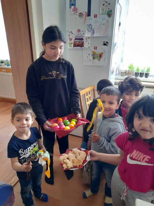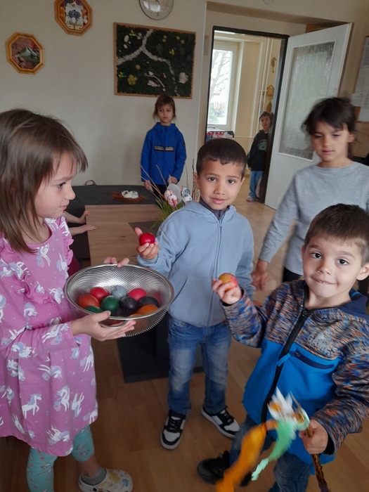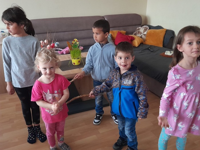 Velikonoční pondělí si chlapci z rodinných skupin P3 a VČ 5 užili tradičním koledováním a děvčata je za to odměnila malovanými vajíčky a sladkým pohoštěním.