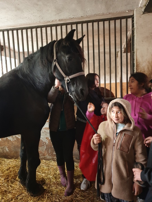 Dne 11. 10. 2024 se naši žáci díky projektu PROP zúčastnili návštěvy Šťastné stodoly - Kolouchova dvora v Radíčevsi. I přes nepřízeň počasí, která znemožnila jízdy na koni, si žáci užili krásně strávený den. Vyzkoušeli si péči o koně, výrobu mýdel a soutěžili v různých aktivitách. Každý si odnesl vlastnoručně vyrobené mýdlo jako památku. Děkujeme paní Drahomíře Kolouchové za tento nezapomenutelný zážitek.