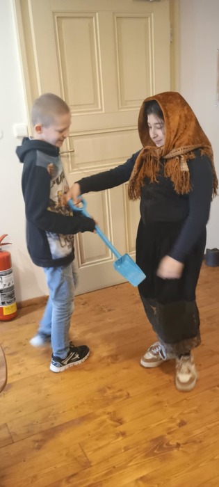 Naše další návštěva Mederova domu byla opět ve znamení pohádky. Tentokrát to byla "Perníková chaloupka" . Po poslechu pohádky se rozdaly role a s chutí se hrálo. Nutno dodat, že děti krásně improvizovaly a hraní pohádky si v různým rolích krásně užily. Poté se těšily na zdobení ulovených perníčků a následnou zaslouženou konzumaci.