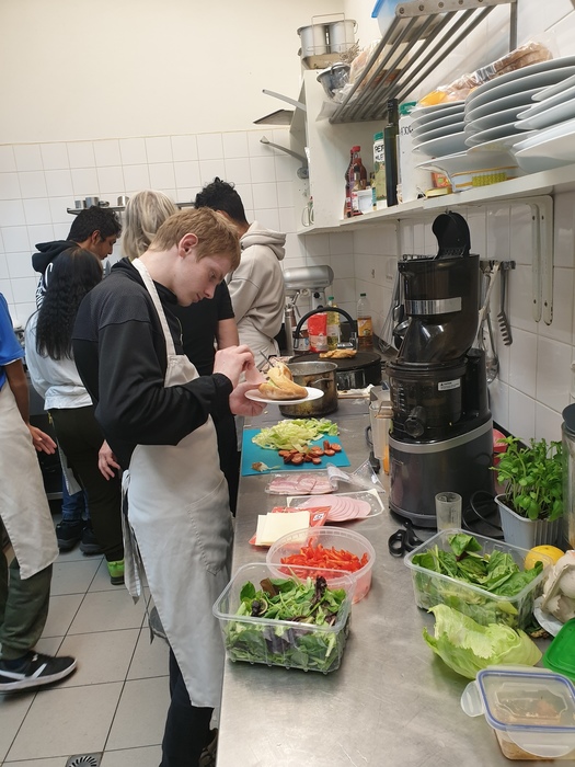 Žáci si vyzkoušeli roli kuchařů a připravili sladké i slané palačinky, plněný pita chléb a pomerančový fresh. Podle prázdných talířů jim to určitě chutnalo! ????????