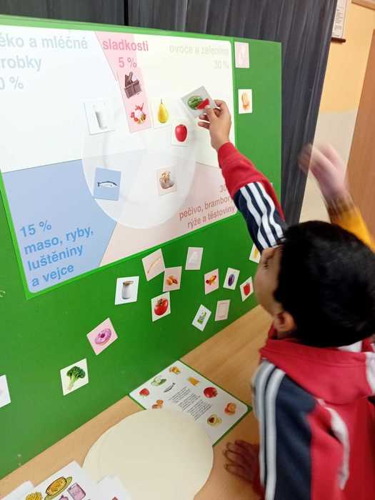Někteří žáci se rozhodli hrát interaktivní pexeso na téma zdravé výživy. Tato hra nejenže pomohla rozvíjet jejich paměť, ale také je učila poznávat různé potraviny a jejich význam pro naše zdraví. Další skupina žáků se zaměřila na sestavení zdravého talíře. Učili se, jak správně kombinovat potraviny, aby jejich jídlo obsahovalo všechny potřebné živiny. Bylo skvělé vidět, jak si žáci uvědomují důležitost vyvážené stravy. Menší žáčci si vybarvovali omalovánky na dané téma, hráli poznávací hru, kde se seznámili s různými druhy ovoce a zeleniny a jejich výhodami pro naše zdraví. Bylo to nejen poučné, ale také velmi zábavné. V jiné třídě se sehrávaly různé scénky na téma nákup potravin, kde mohli žáci předvést i své herecké nadání :) Z toho, co si žáci "nakoupili", si pak vyráběli košíky s potravinami různého druhu. Žáci střední školy pak vyrobili pyramidu zdravé výživy, která nám ukazuje, jaké potraviny bychom měli jíst ve větším množství a které bychom měli omezit. Tato aktivita jim pomohla lépe porozumět tomu, jaké potraviny jsou pro ně nejlepší.