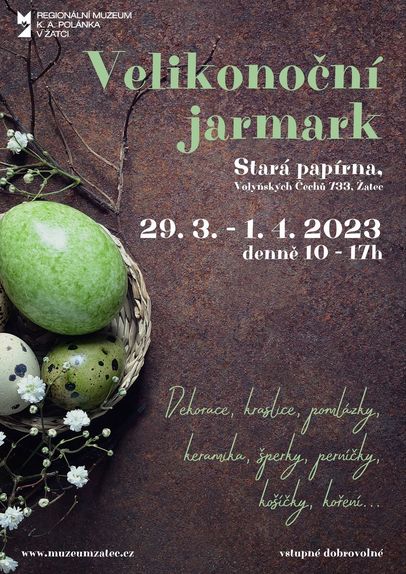 Naše děti se každoročně účastní velikonočního jarmarku, který pořádá Regionální muzeum K. A. Polánka v Žatci ve dnech 29. března - 1. dubna 2023 v čase od 10 do 17 hodin v budově Starých papíren v Žatci. Děti se na tuto akci pečlivě připravují a za pomoci tet, strejdů a učitelek již vyrábí krásné velikonoční a jarní dekorace. Výrobků bude samozřejmě mnohem více, rozhodně se máte na co těšit. Budeme se na vás těšit a pokud nás chcete trochu podpořit, můžete si výrobky našich dětí za drobný peníz zakoupit :)